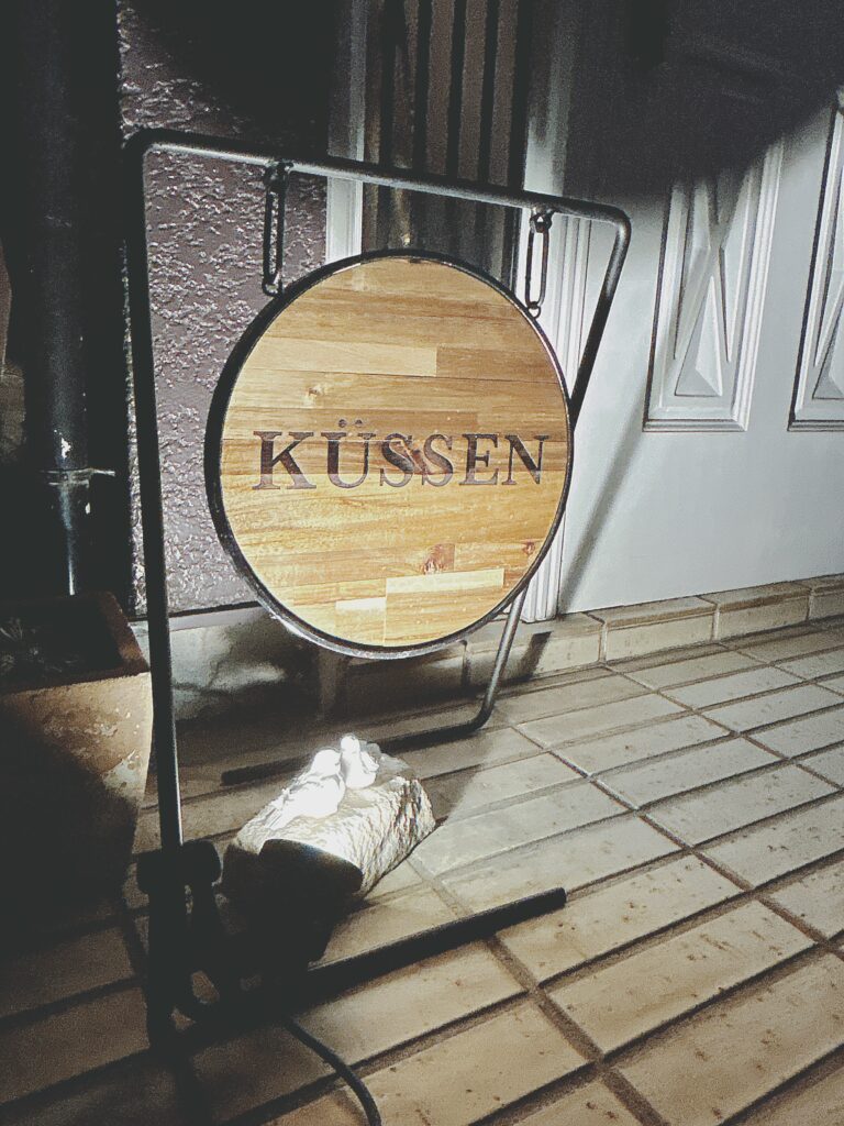 キュッセンでも使用しているアイアン×ウッドの看板と